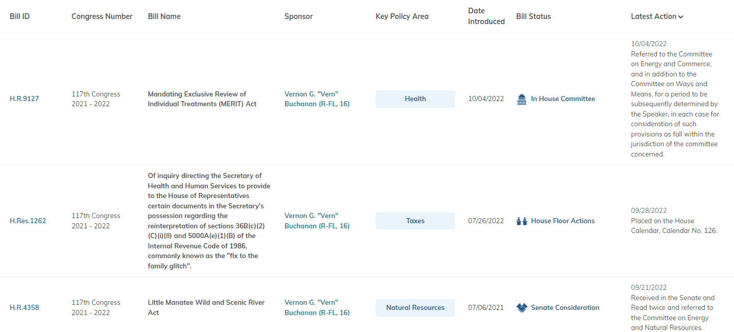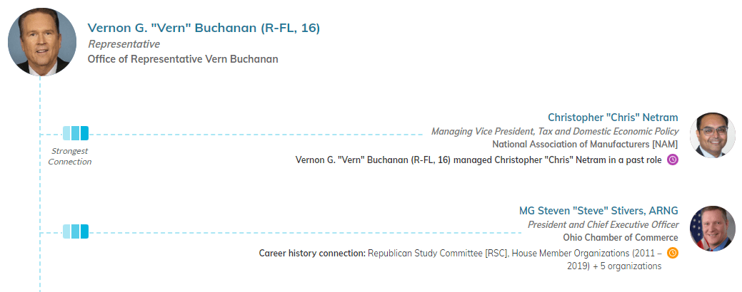 Buchanan’s Legislative Director Aaron Bill has private sector connections from his past roles in Congress and law firms.