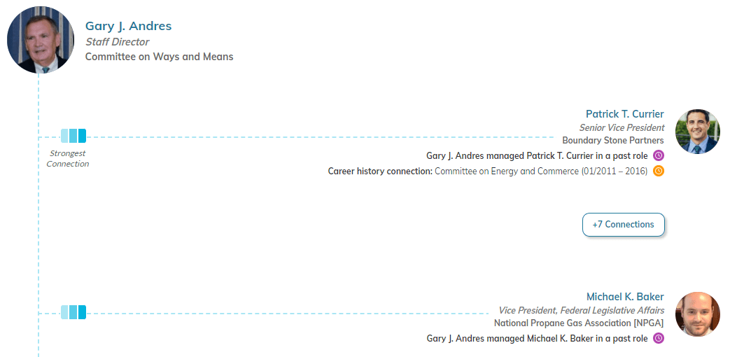If you need to work with this committee and track legislation, use Leadership Connect to develop relationships with the most influential people. Start off by seeing what bills may be introduced, who would be responsible for the text, and how you can connect with them.