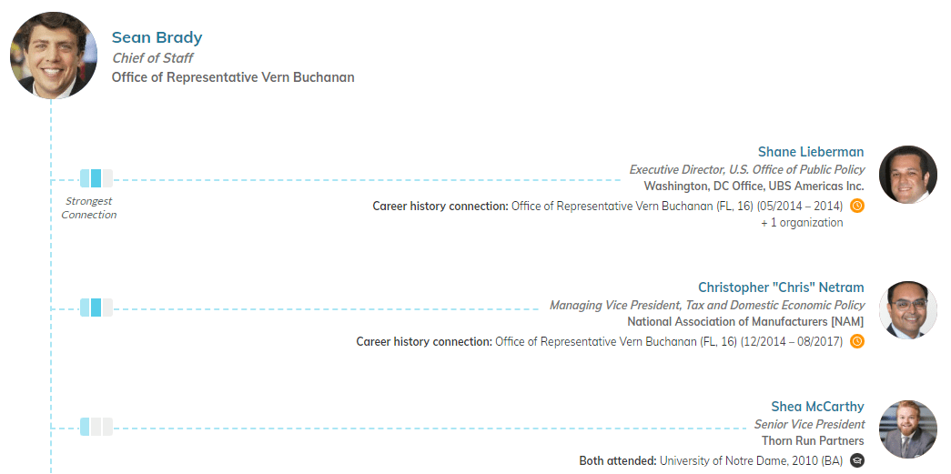 Buchanan’s Chief of Staff Sean Brady has only worked for members of Congress but has many connections with government affairs teams and associations.